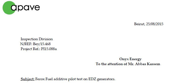 Ferox Fuel additive pilot test on EDZ generators …