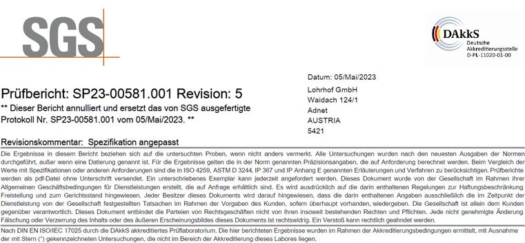 Ferox SGS Zertifikat Diesel NORMHALTIGKEIT 2023
