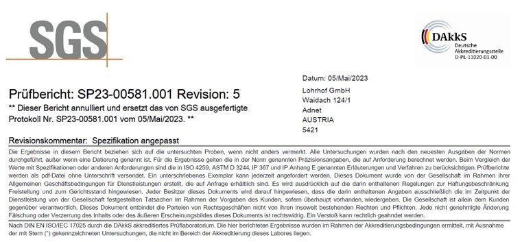 SGS Zertifikat Diesel NORMHALTIGKEIT 2023